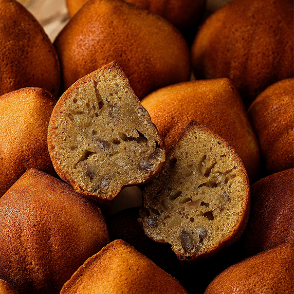 使用精心烹制的自制栗子蜜饯和风味丰富的栗子泥制成的玛德琳。