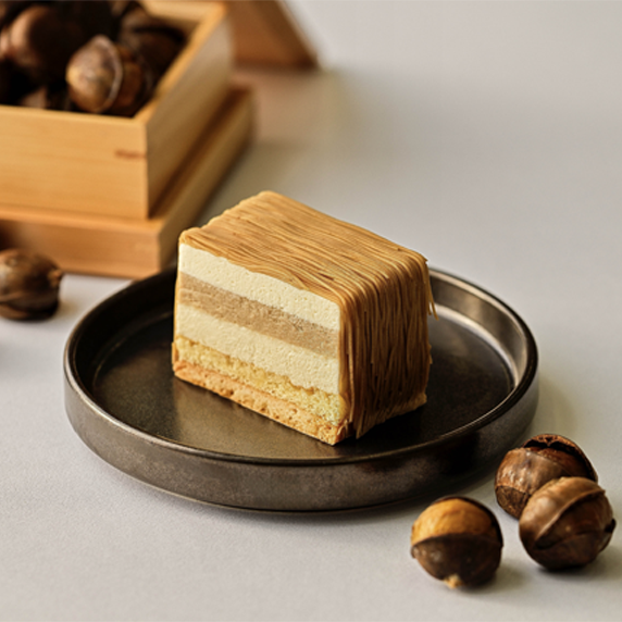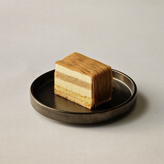 使用马斯卡彭奶酪制成的轻盈提拉米苏奶油与栗子泥融合,形成层次丰富的蒙布朗。